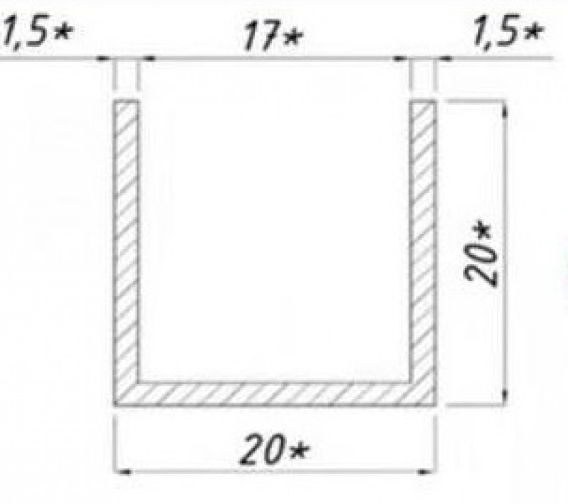 Алюминиевый профиль для душевой кабины, 20х20х1,5 мм