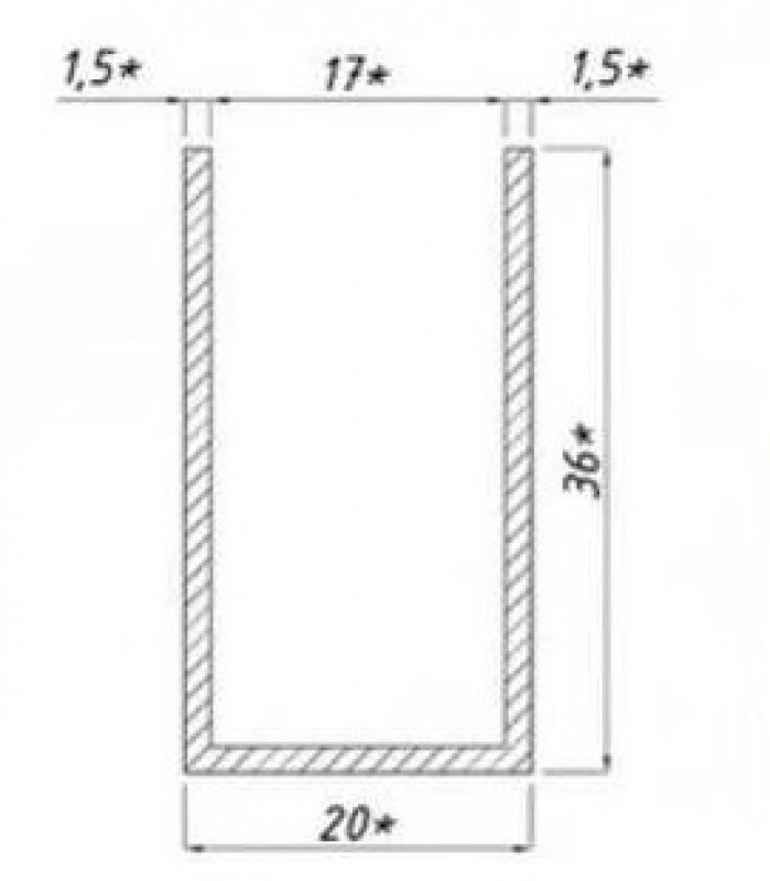 Алюминиевый профиль для душевой кабины, 36х20х1,5 мм