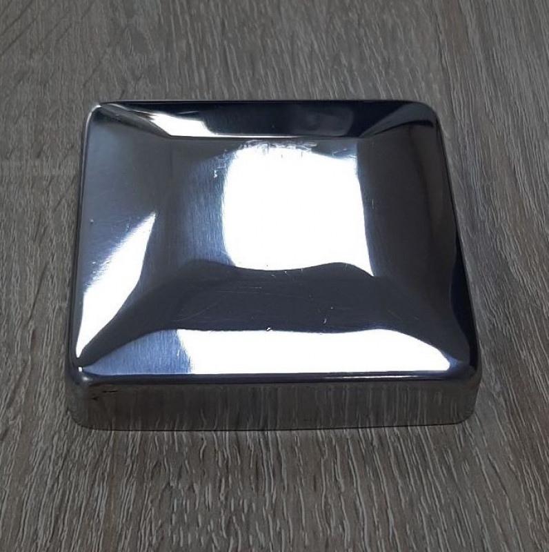 Материал: нержавеющая сталь марки AISI 304. Габариты: наружный 80х80х20 мм толщина стенки 0,8 мм, без отверстия. Поверхность: Полированная (зеркало)