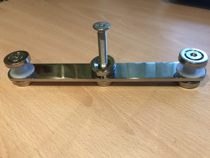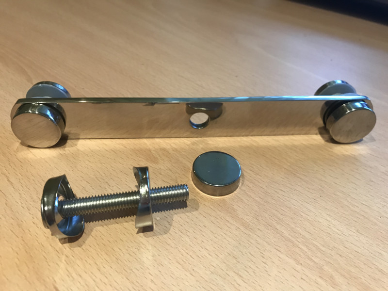 Стеклодержатель пластинчатый для стекла 8-10 мм, полированный, в комплекте с 3-мя штампованными шайбами 25х5х0.5 мм