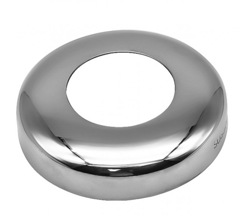 Материал: нержавеющая сталь марки AISI 304. Габариты: наружный Ø100 мм, высота 27 мм, толщина стенки 0,8 мм, под трубу 50,8 мм Поверхность: Полированная (зеркало)