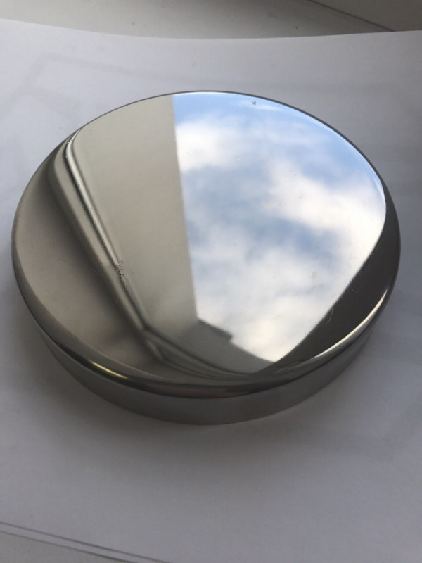 Материал: нержавеющая сталь марки AISI 304. Габариты: наружный Ø120 мм, высота 20 мм, толщина стенки 1 мм, без отверстия Поверхность: Полированная (зеркало)