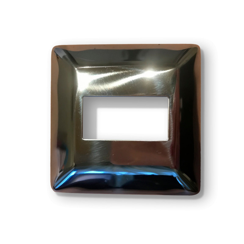 Материал: нержавеющая сталь марки AISI 304. Габариты: наружный 80х80х17 мм толщина стенки 1 мм под трубу 40х20. Поверхность: Полированная (зеркало)