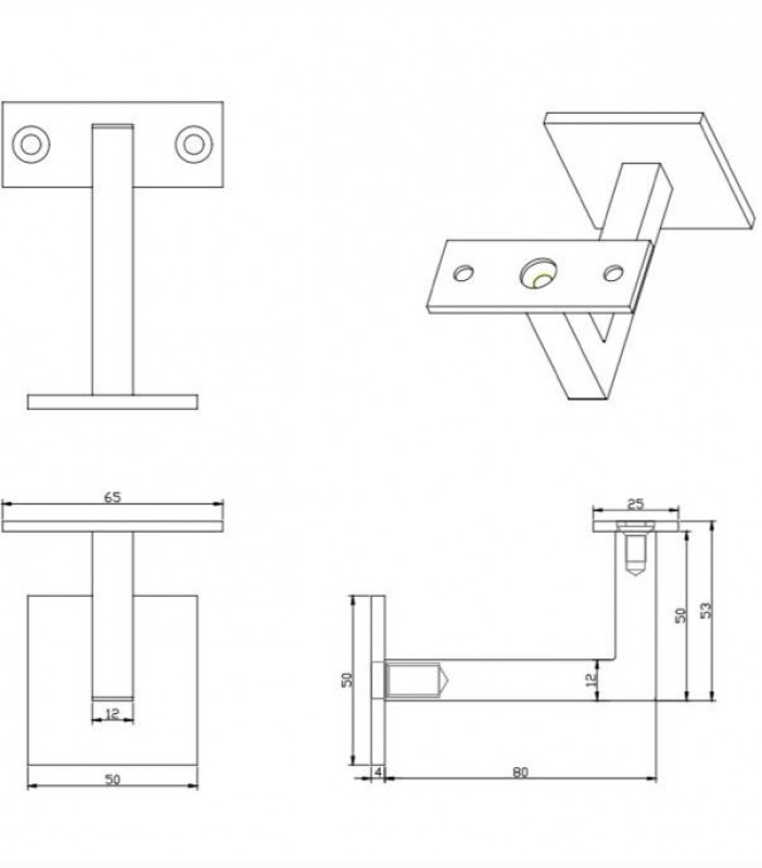 Держатель крепится саморезом М8 - 60 мм. Поручень на ложемент устанавливается под сварку или на саморезы. Ложемент под профильную трубу.