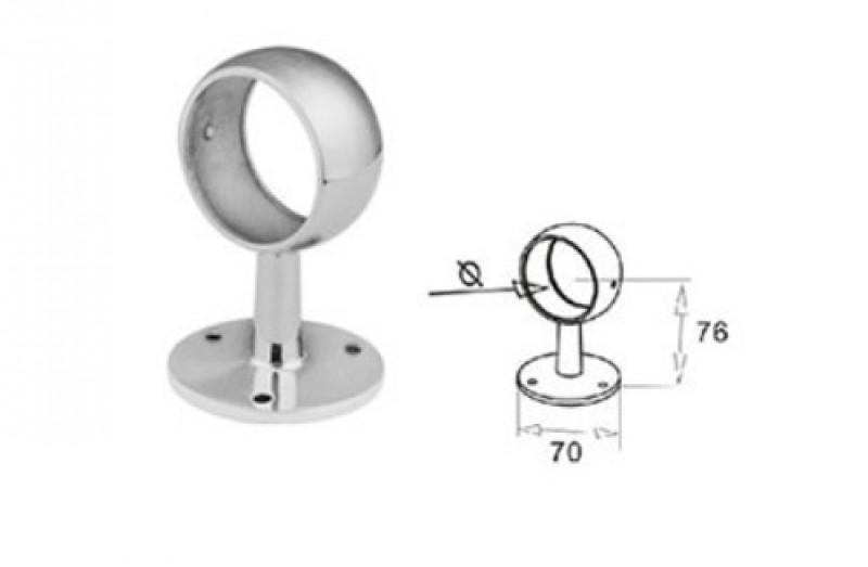 Держатель крепится фланцем на три самореза. Поручень 50,8 мм крепится через кольцо.