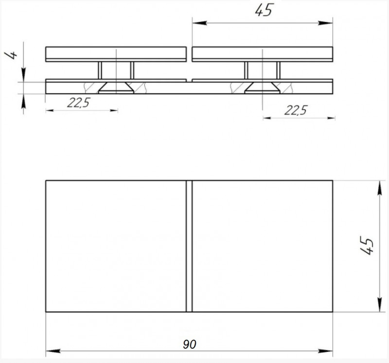 Соединитель стекла Inoxstore 45х90х4 мм на 180°, сатинированный, AISI 304