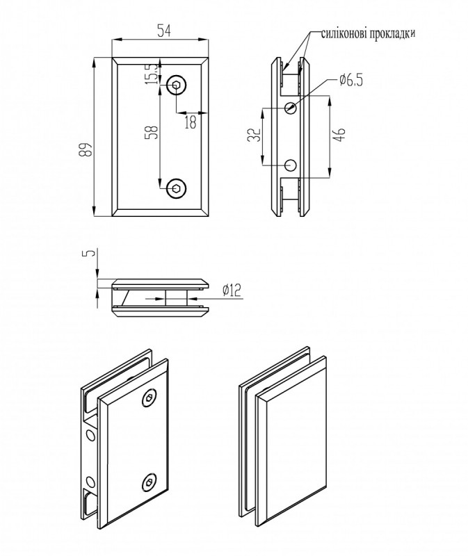 Стеклодержатель Inoxstore "Элеган" 90° стена-стекло, с фаской, сатинированная, AISI 304