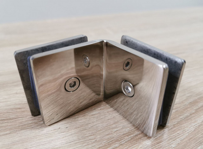 Соединитель стекла Inoxstore 45х90х4 мм на 90°, угловой, полированный, AISI 304