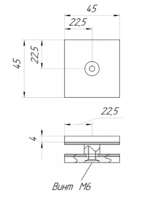 Стеклодержатель Inoxstore 45х45х4 мм, полированный, AISI 304