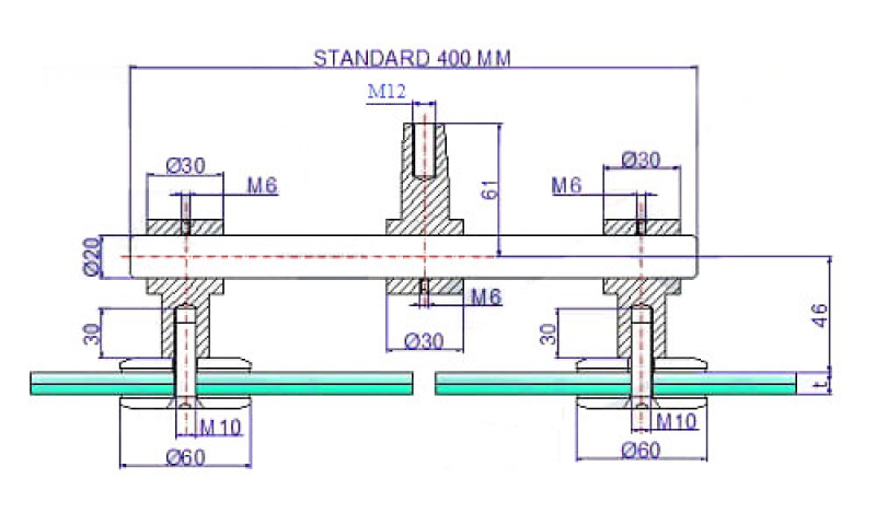 Характеристики Двойное крепление стекло-стена Inoxstore, М12, сатинированное, AISI 304