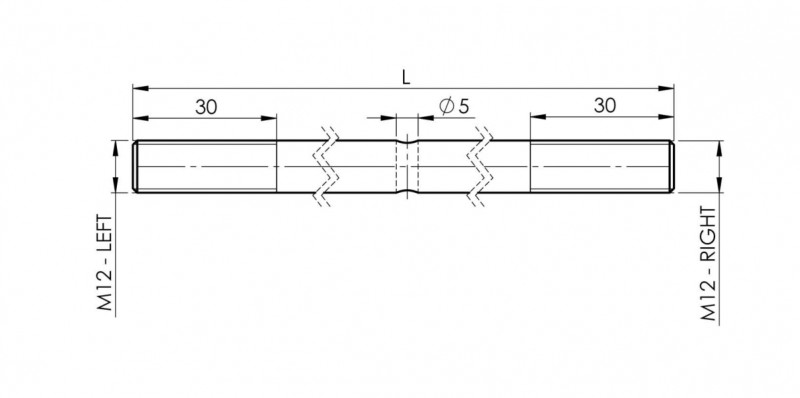 Диаметр стержня ø 12 мм, длина резьбы 30 мм, на противоположных концах стержня - M12 право / M12 лево, длина 1300 мм