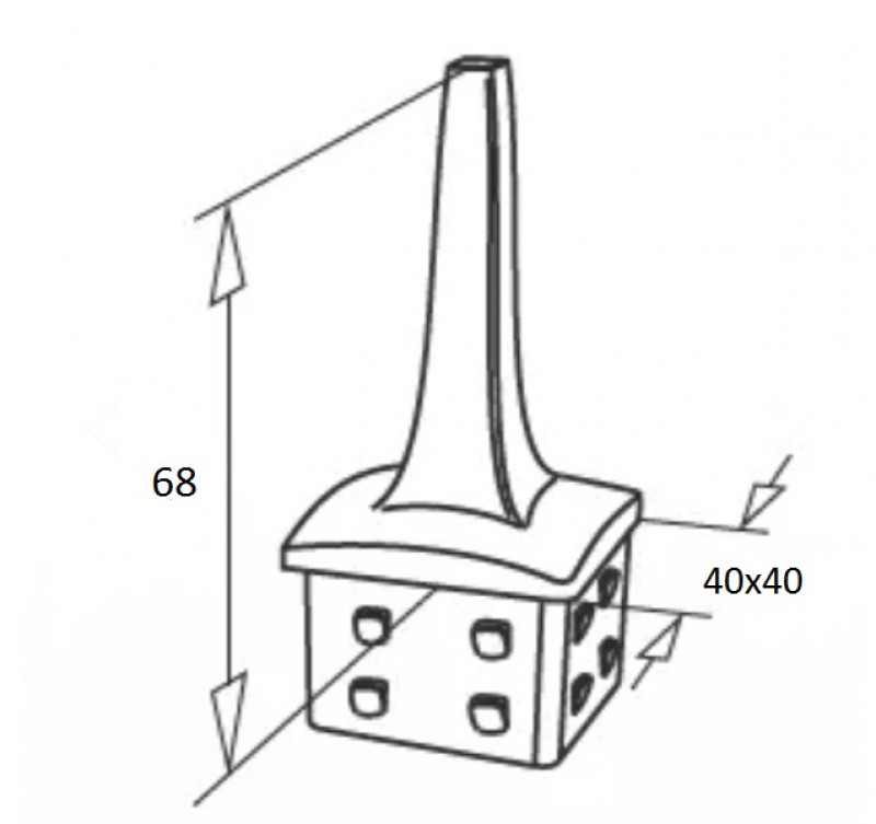 Назначение: Уникальная позиция, самый дешевый вариант наконечника на квадратную трубу 40х40 мм. Перила привариваются очень быстро, благодаря малому пятну контакта.