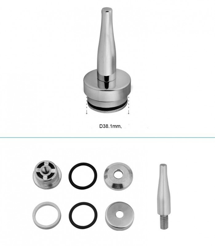 Назначение: Устанавливается на стойку Ø 38,1 мм. Перила привариваются сверху, а в стойку наконечник просто закручивается или сажается на клей. Детель состоит из нескольких частей, при монтаже резиновые уплотнители распирают стенки стойки изнутри, благодаря чему происходит фиксация наконечника в полости трубы.