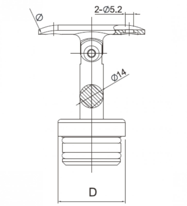 Установка: нижнюю часть детали закрутить в стойку, верхнюю – прикрутите к поручню, затем центральным винтом выполните скручивание всего узла.