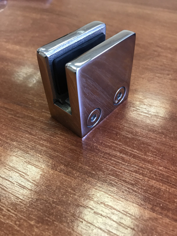 Для установки стекла не придется просверливать в нем отверстия. Данный вариант стеклодержателя обеспечивает надежную и устойчивую фиксацию стеклянных полотен. Сами фиксаторы выполнены из нержавеющей стали марки AISI 304 – они не подвержены разрушению под действием влаги, высоких и низких температур, отлично выдерживают механические нагрузки. Поверхность стеклодержателя полированная, зеркальная, благодаря чему конструкция приобретает привлекательный и стильный вид.