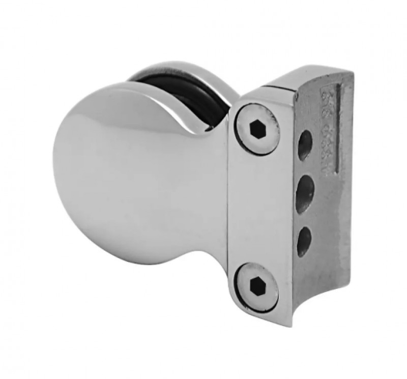 1. Стеклодержатель делим на две части, выкрутив шестигранники. В стойке выполняем отверстие для вытяжной резьбовой заклепки под винт для монтажа кронштейна. Закрепляем деталь стеклодержателя, которая является несущей, к стойке внутрь посредством винта или самореза из нержавейки. Стекло закрепляется посредством установки второй части кронштейна.
