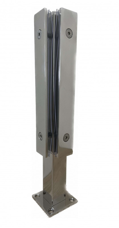 Стеклодержатель Inoxstore напольный, угловой 40х40х400 мм, с прижимной пластиной, полированный, AISI 304