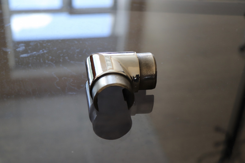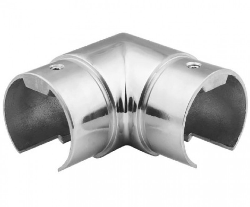 Назначение: Фитинг предназначен для поворота поручня диаметром 42.4 мм самосборных ограждений с несущим стеклом под углом 90 градусов в горизонтальной плоскости.