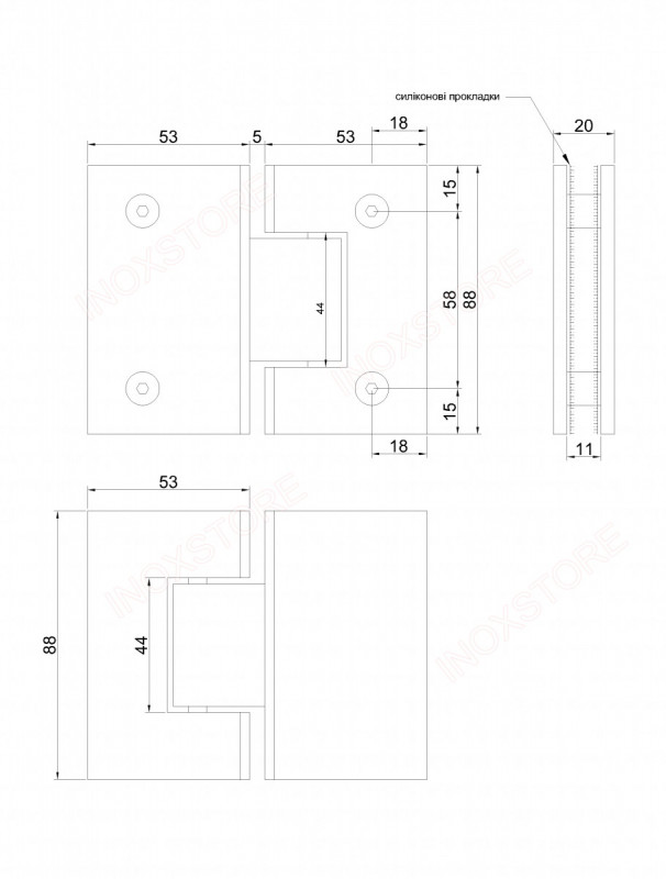 О продукте Петля Inoxstore "Престиж" 180° стекло-стекло, без фаски, полированная, AISI 304
