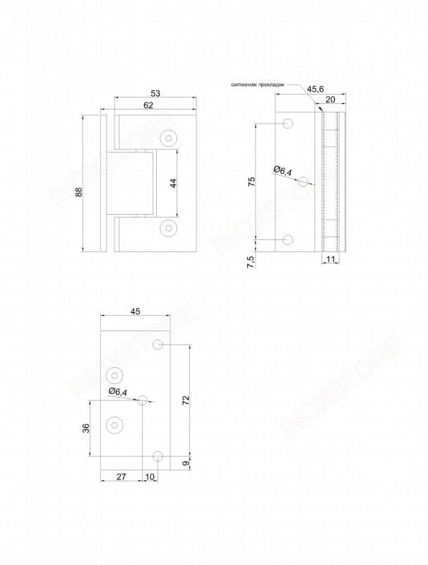 Отзывы Петля Inoxstore "Престиж" 90°, стена-стекло со смещением, без фаски, полированная, AISI 304