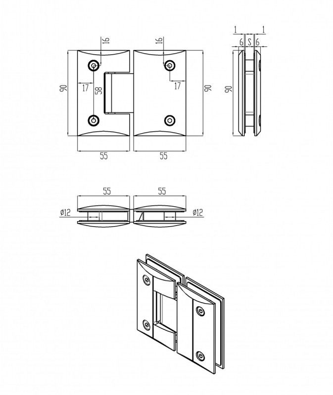 Петля Inoxstore "Гонор" 180° стекло-стекло, выпуклый, сатинированная, AISI 304