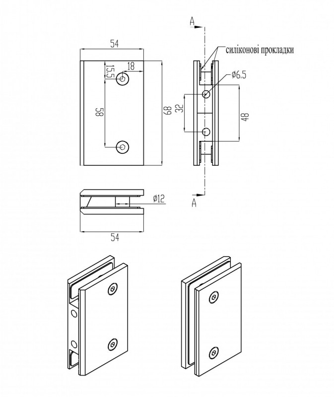 Стеклодержатель Inoxstore Престиж" стена-стекло, без фаски, сатинированная, AISI 304