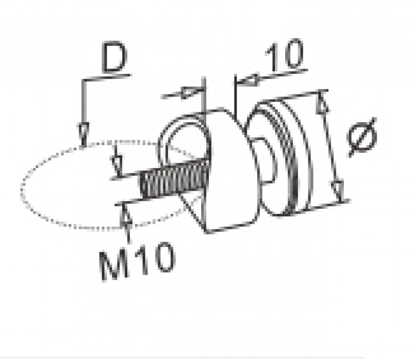 Стеклодержатель для цилиндрического отверстия под одинарное стекло или триплекс толщиной 6-12 мм.