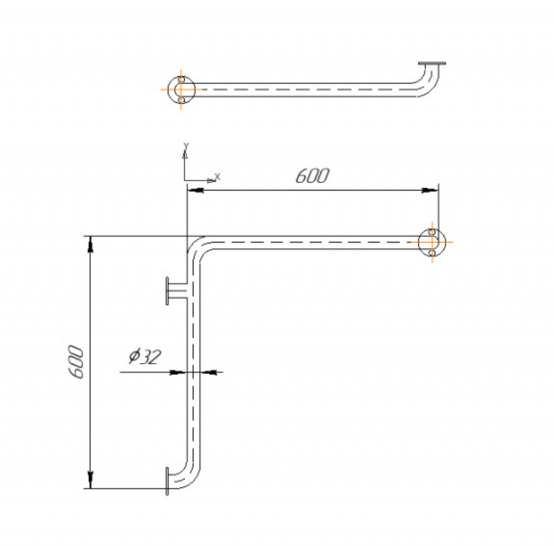 Поручень пристенный угловой из нержавеющей стали, полированный, 600х600 мм