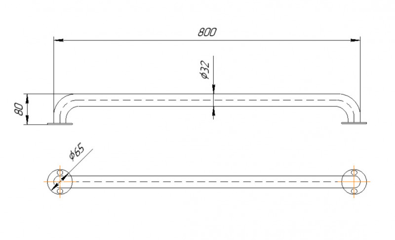 Поручень пристенный из нержавеющей стали AISI 304, полированный, 800 мм