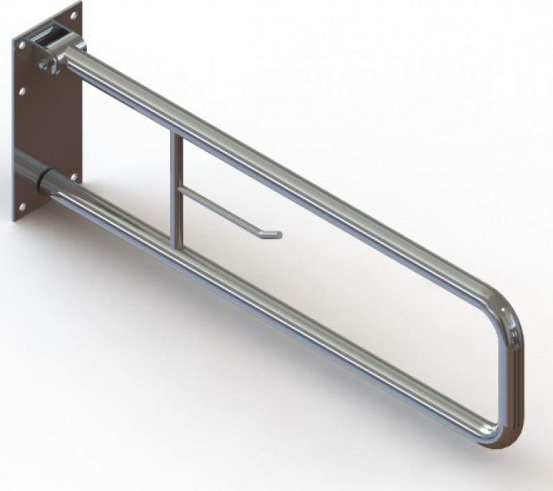 Поручень подъемный с держателем для туалетной бумаги изготовлен из одного из самых надежных видов стали – AISI 304: