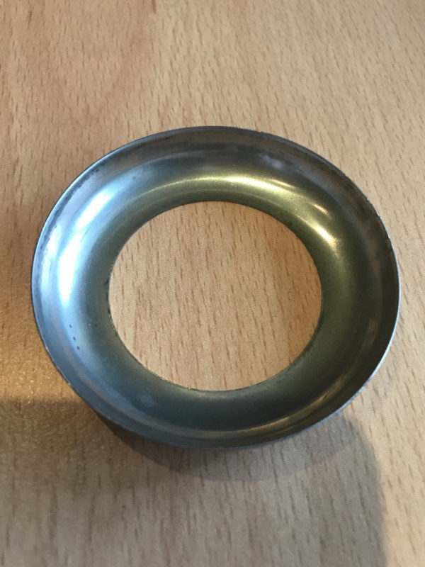 Материал: нержавеющая сталь марки AISI 304. Габариты: наружный Ø 60 мм, высота 12 мм, толщина стенки 0,4 мм, под трубу 38,1 мм. Поверхность: Полированная (зеркало)