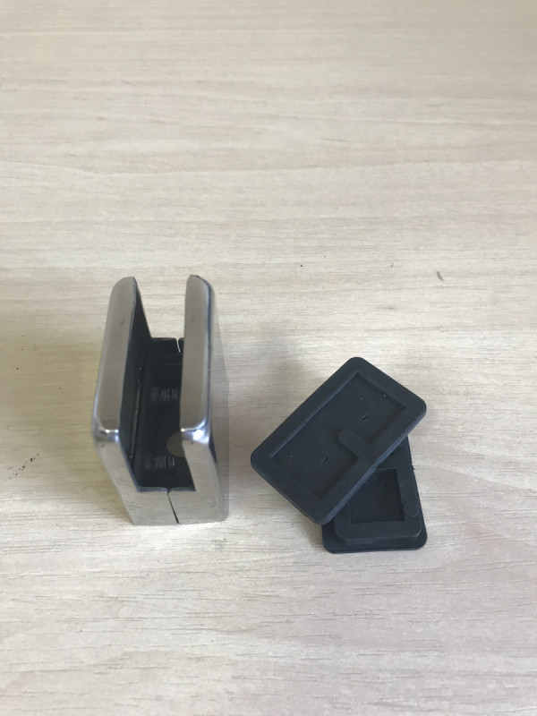 Стеклодержатель делим на две части, выкрутив шестигранники. В стойке выполняем отверстие для вытяжной резьбовой заклепки под винт для монтажа кронштейна или приваривают корпус стеклодержателя к внешней стенке трубы стойки. Закрепляем деталь стеклодержателя, которая является несущей, к стойке внутрь посредством винта или самореза из нержавейки. Стекло закрепляется посредством установки второй части кронштейна.