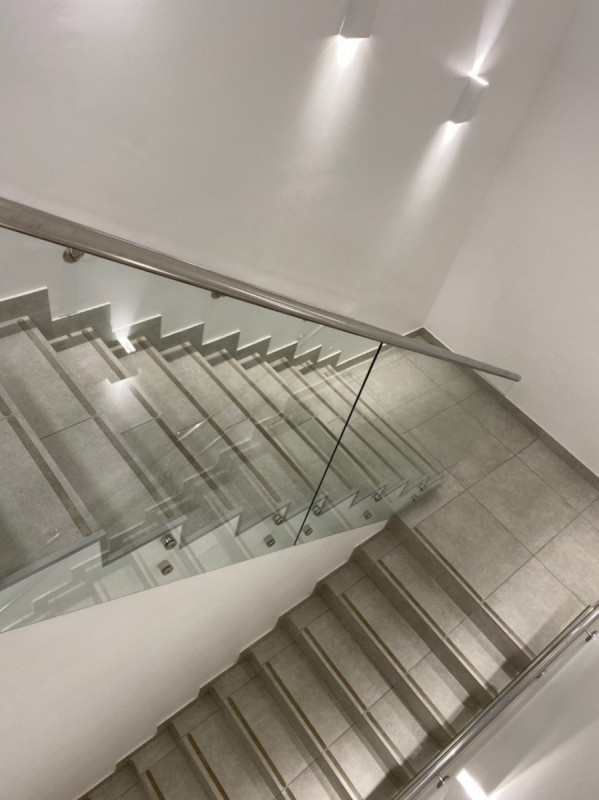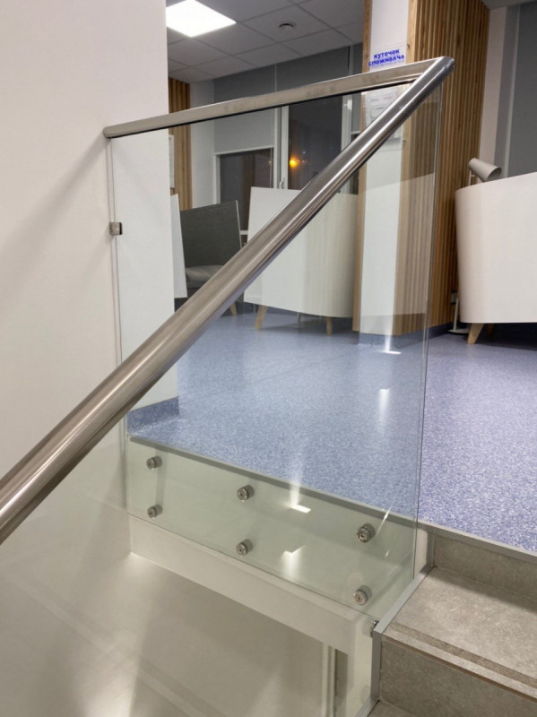 Стеклянные ограждения выглядят стильно и не создают сложностей в уходе. Стекло отлично выдерживает капризы погоды и продолжительную эксплуатацию. Сделать ограждение более практичным и эстетически привлекательным поможет стальной поручень. Используйте трубу круглую с пазом – такой элемент не требует дополнительных деталей для крепления (достаточно резинового уплотнителя) и обладает рядом других преимуществ: