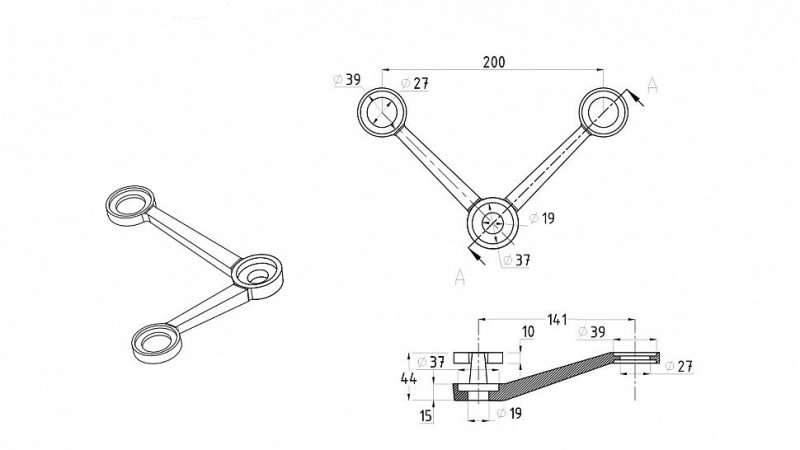 Спайдер Inoxstore двойной 200 мм, V-образный 2х26х38 мм, сатинированный, AISI 304