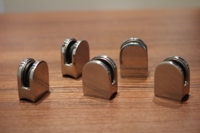 Для производства стеклодержателей полукруглой формы используется одна из самых надежных марок стали – AISI 304. Этот материал не чувствителен к влаге, механическим нагрузкам, температурным перепадам. Он сохраняет свои свойства и привлекательный внешний вид как в помещениях, так и при эксплуатации на открытых пространствах. Поверхность держателей полированная, что упрощает уход за ними и повышает эстетичность конструкции.