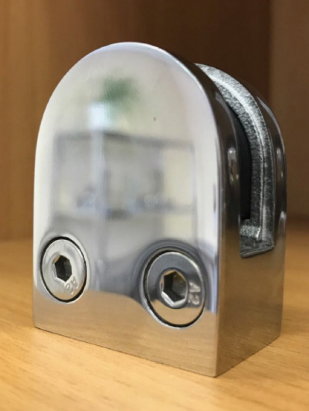 1. Стеклодержатель делим на две части, выкрутив шестигранники. В стойке выполняем отверстие для вытяжной резьбовой заклепки под винт для монтажа кронштейна. Закрепляем деталь стеклодержателя, которая является несущей, к стойке внутрь посредством винта или самореза из нержавейки. Стекло закрепляется посредством установки второй части кронштейна.