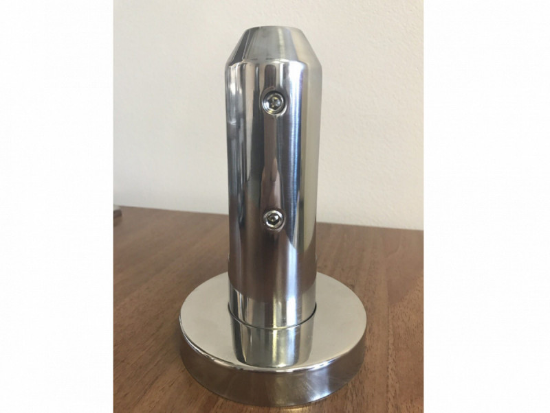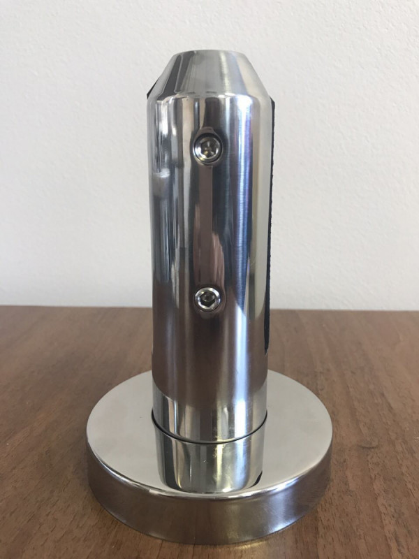 Стеклодержатель напольный изготовлен из нержавеющей стали AISI 304 и является прочным и долговечным решением для фиксации стеклянных ограждений. Держатель данной модели привлекает круглой формой и полированной (зеркальной) поверхностью. Такие элементы служат украшением конструкции и не нуждаются в маскировке или дополнительной обработке.