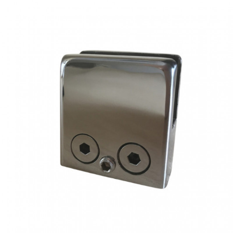 Стеклодержатель штампованный квадратный 45х45х25 мм / Ø 38,1 мм, под стекло 10 мм, полированный, AISI 304