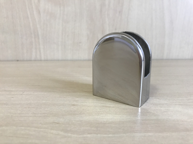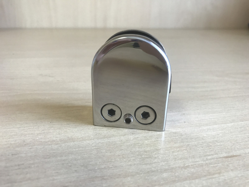 Стеклодержатель делим на две части, выкрутив шестигранники. В стойке выполняем отверстие для вытяжной резьбовой заклепки под винт для монтажа кронштейна или приваривают корпус стеклодержателя к внешней стенке трубы стойки. Закрепляем деталь стеклодержателя, которая является несущей, к стойке внутрь посредством винта или самореза из нержавейки. Стекло закрепляется посредством установки второй части кронштейна.