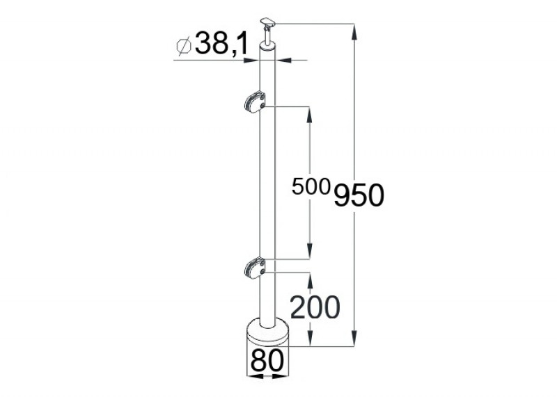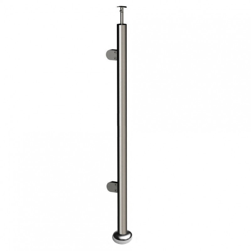 Стойка круглая Ø38.1 с 2-мя штампованными полукруглыми зажимными стеклодержателями, полированная, высота 950мм (AISI 304)