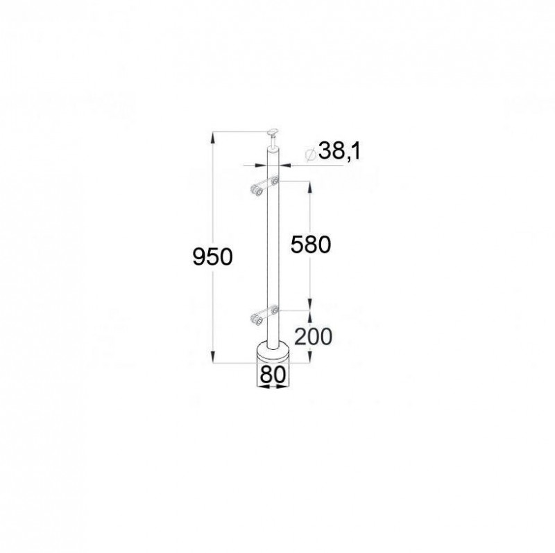 Стойка круглая Ø38.1 с 2-мя пластинчатыми стеклодержателями, полированная, высота 950мм (AISI 304)