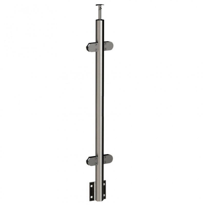 Стойка круглая Ø38.1 с 4-мя штампованными полукруглыми зажимными стеклодержателями