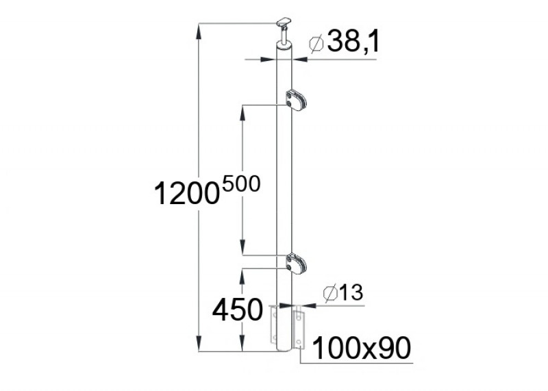 - стойка полированная круглая Ø38.1 мм с приварным фланцем - 1 шт.