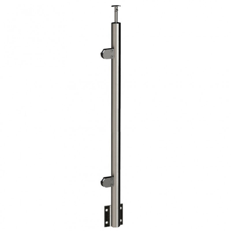 Стойка круглая Ø38.1 с 2-мя штампованными полукруглыми зажимными стеклодержателями