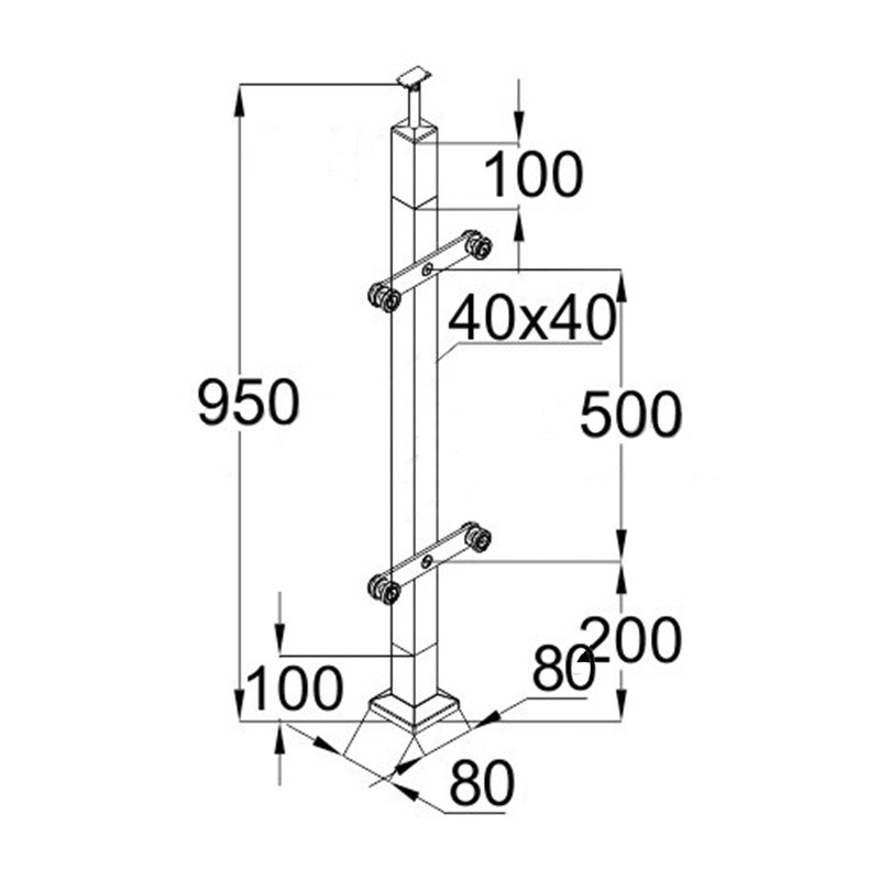 Стойка квадратная 40х40 мм с пластинчатыми стеклодержателями, деревянная со вставками из нержавеющей стали.