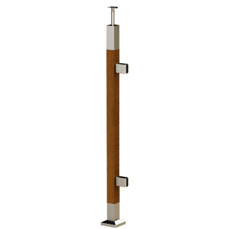 Стойка квадратная 40х40 мм с штампованными стеклодержателями, деревянная со вставками из нержавеющей стали.
