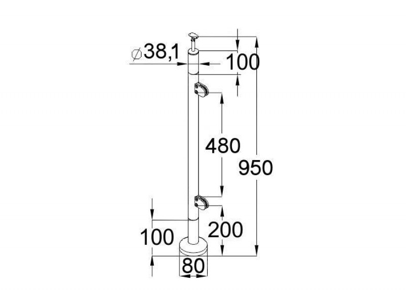 Стойка круглая 38,1 мм (высота 950 мм) с 2 литыми стеклодержателями, деревянная со вставками из нержавеющей стали.