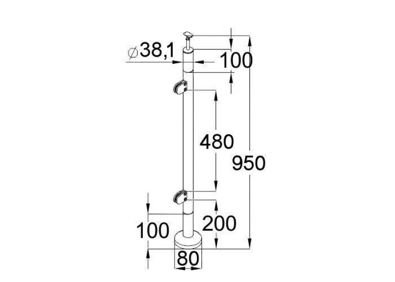 Стойка круглая 38,1 мм (высота 950 мм) с 2 литыми стеклодержателями, деревянная со вставками из нержавеющей стали.