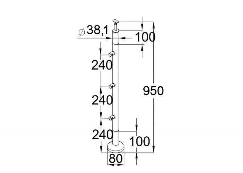 Стойка круглая 38,1 мм (высота 950 мм) с 3 ригелями, деревянная со вставками из нержавеющей стали.