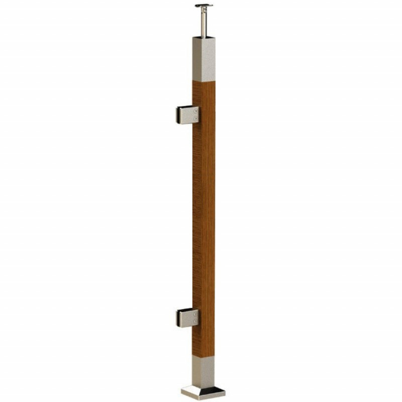 Стойка квадратная 40х40 мм с литыми стеклодержателями, деревянная со вставками из нержавеющей стали.
